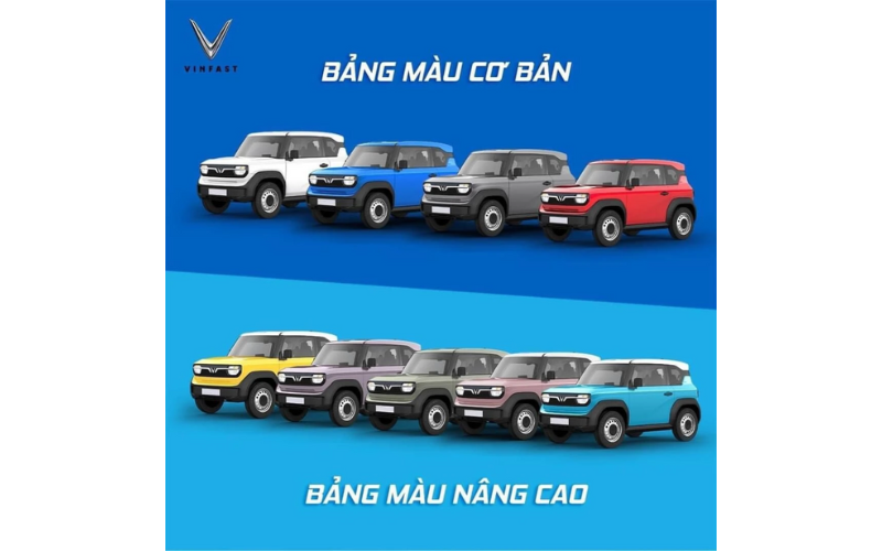 VinFast mang đến bảng màu cực kỳ đa dạng cho mẫu xe điện mini này, đáp ứng tối đa nhu cầu cá nhân hóa của người dùng trẻ. Hiện tại, VinFast VF 3 đang sở hữu các tùy chọn màu sắc cơ bản và nâng cao bao gồm: