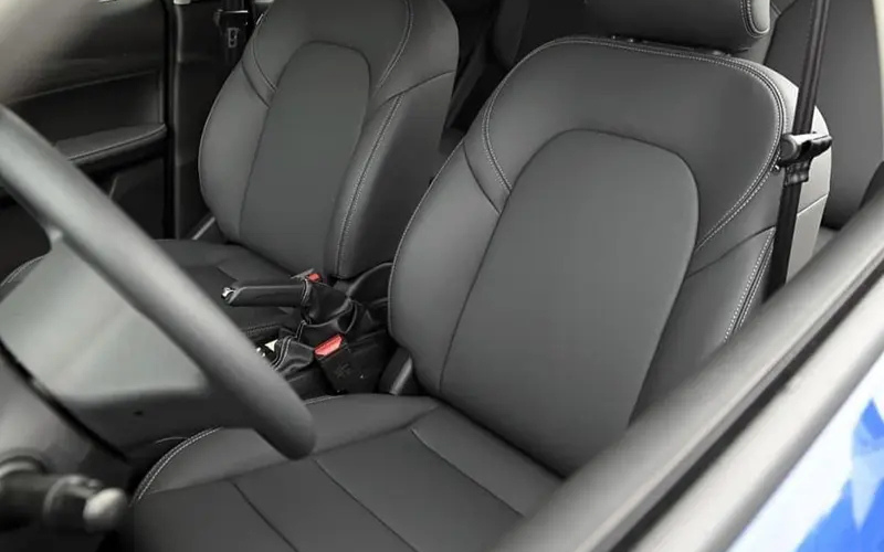 Ghế ngồi trên VF 5 được phối màu cầu kỳ với lưng ghế cam và viền chỉ khâu nổi bật trên nền đen. Xe có kết cấu 5 chỗ ngồi với tựa đầu điều chỉnh độ cao. Một điểm trừ nhỏ là sự thiếu vắng bệ tỳ tay trung tâm cho cả hai hàng ghế, điều này có thể gây chút bất tiện khi di chuyển đường dài.